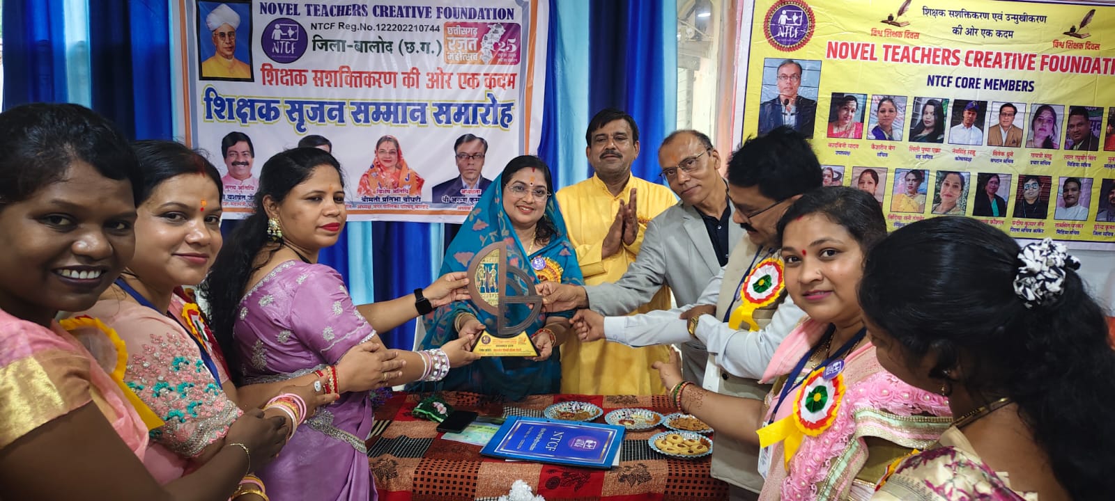 नावेल टीचर्स क्रिएटिव फाउंडेशन(NTCF) जिला बालोद छत्तीसगढ़ के द्वारा कला केंद्र बालोद में शिक्षक सशक्तिकरण की ओर एक कदम के अंतर्गत शिक्षक सृजन सम्मान समारोह के कार्यक्रम में मुख्य अतिथि के रूप में श्री राकेश यादव पूर्व प्रदेश मंत्री भाजपा छत्तीसगढ़, विशेष अतिथि के रूप में नगर पालिका परिषद बालोद की अध्यक्ष श्रीमती प्रतिभा चौधरी जी ने शिरकत की।
