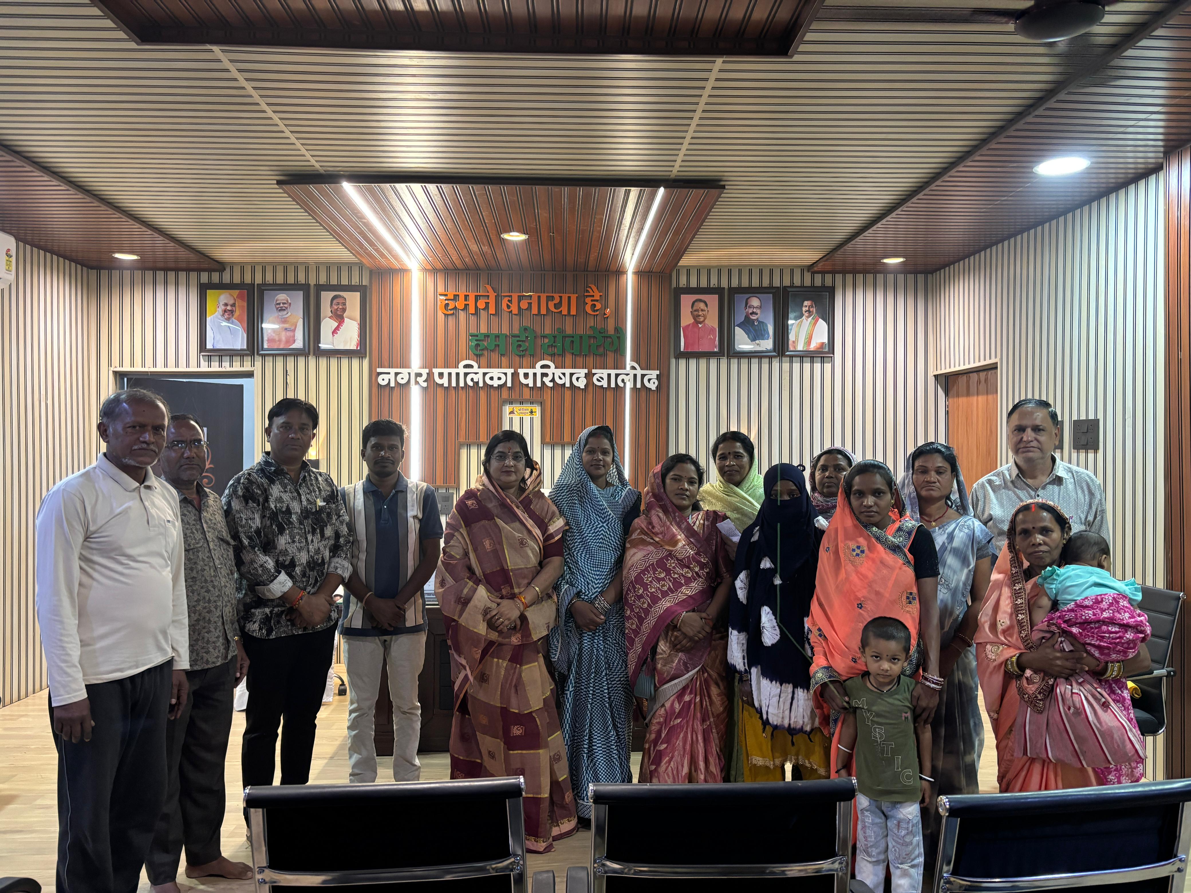 नगर पालिका परिषद बालोद में शुक्रवार को विभिन्न जनकल्याणकारी योजनाओं के अंतर्गत प्राप्त आवेदनों पर विचार-विमर्श करने के लिए नगर पालिका परिषद बालोद की अध्यक्ष श्रीमती प्रतिभा संतोष चौधरी जी के अध्यक्षता मे बैठक आयोजित की गई। बैठक में राष्ट्रीय परिवार सहायता योजना तथा इंदिरा गांधी राष्ट्रीय वृद्धावस्था पेंशन योजना के तहत आए आवेदनों की समीक्षा करते हुए पात्र हितग्राहियों का चयन किया गया।